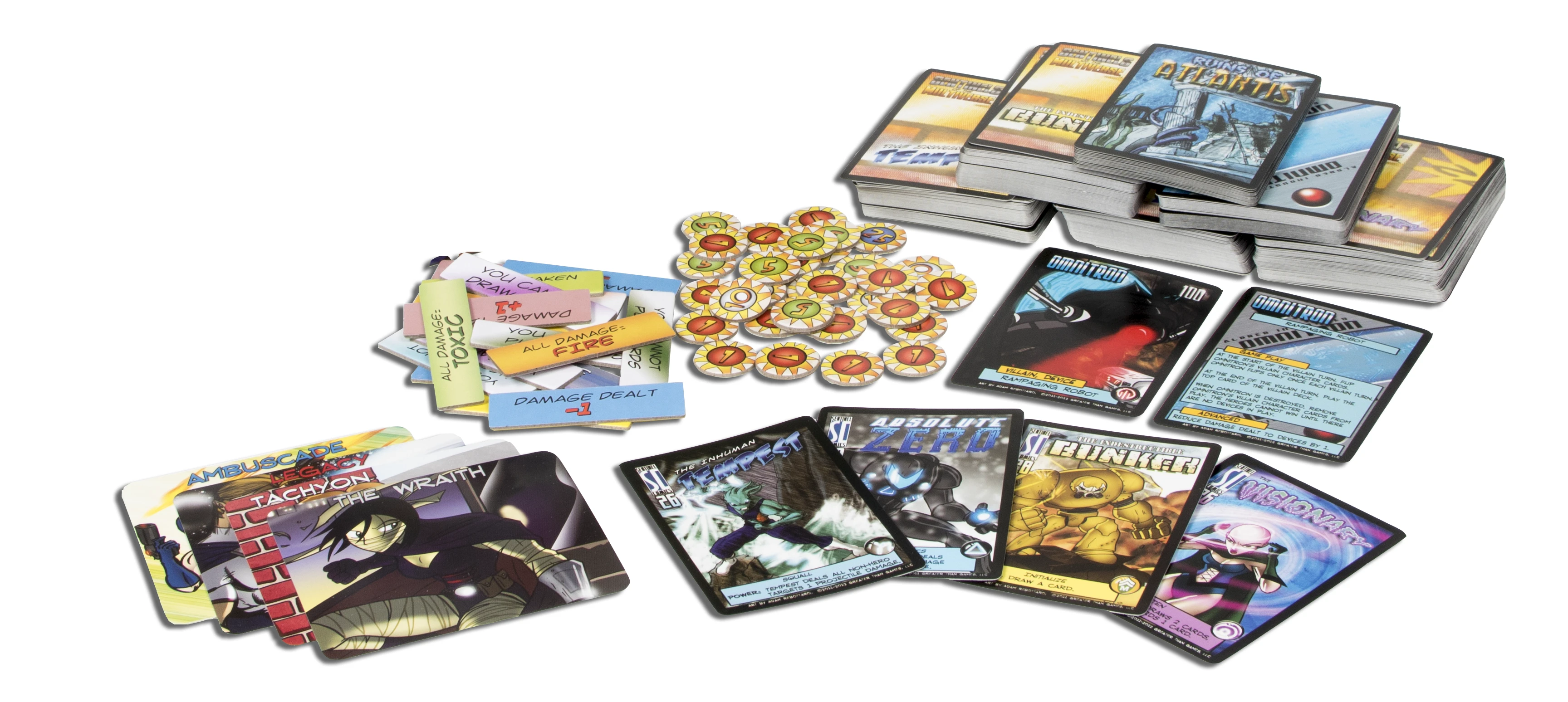 ● 578 Cards (10 Hero Decks, 4 Villain Decks, and 4 Environment Decks)